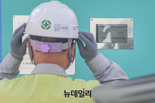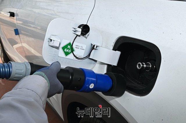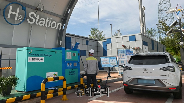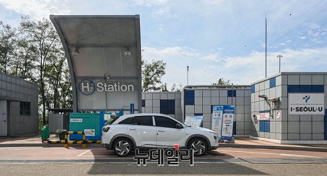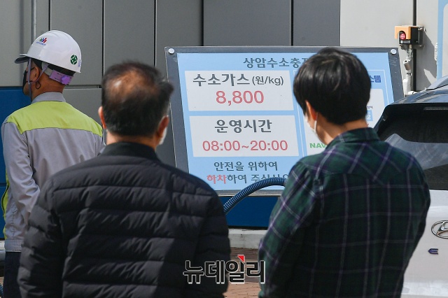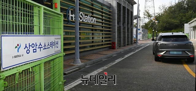 13일 재개소한 서울 마포구 상암수소충전소에 수소차량이 충전을 하고 있다.상암수소충전소는 13일부터 재개소해 시범충전을 시작한다. 이곳은 국내 수소충전소 중 유일하게 수소생산설비를 갖춘 곳이다. 외부에서 수소를 가져와 저장시키는 다른 수소충전소와 달리 직접 수소를 생산해 공급한다.수소전기차 기준 하루 40대 차량을 예약 받고, 충전비용은 한시적으로 무료다. 자체 애플리케이션인 'SangAm H2'와 인터넷 홈페이지를 통해 예약 가능하다. 매일 오전 8시부터 오후 8시까지 운영.