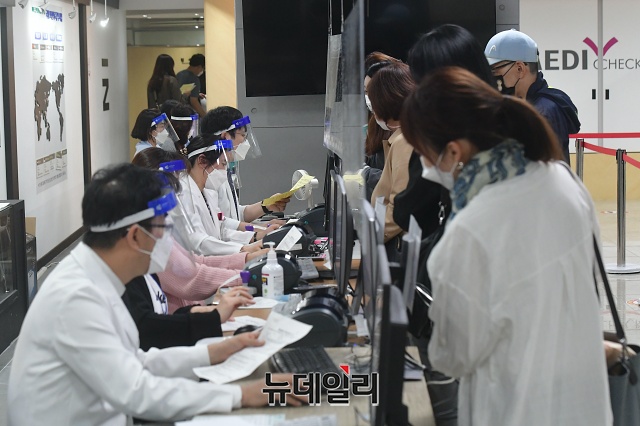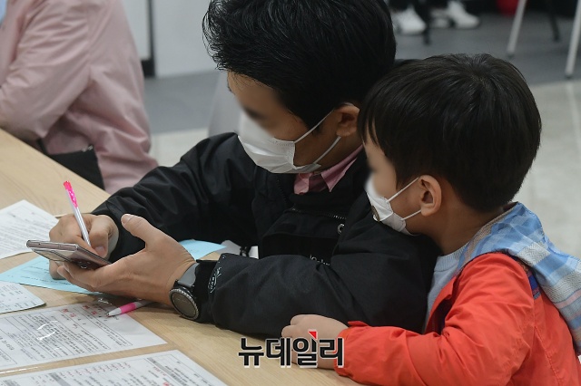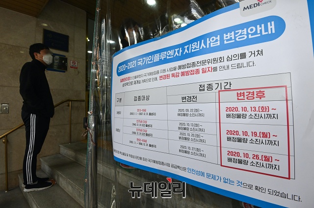 무료 독감예방접종이 재개된 13일 오후 서울 강서구 한국건강관리협회 서울서부지부에서 접종을 앞둔 내원객이 문진표를 작성하고 있다.만13~18세와 임신부를 대상으로 한 무료접종은 9월 22일 시작 예정이었으나, 백신 일부가 유통과정에서 상온노출 돼 하루 전 전면중단됐다. 질병청은 2주간 무료독감백신 유통과정 및 품질 검사를 한 뒤 백신 안전성에 이상없다는 결론을 내리고 접종을 재개했다.만13~18세 청소년은 13일, 만70세 이상은 19일, 만62~69세 어르신은 26일부터 전국 보건소와 지정 의료기관에서 무료 접종이 가능하다.