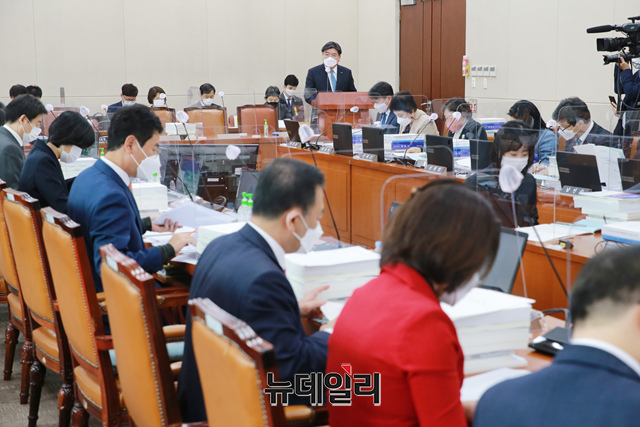 김용진 국민연금공단 이사장이 14일 국회에서 열린 보건복위원회의 국민연금공단에 대한 국정감사에 출석해 업무보고를 하고 있다. (사진=공동취재단)