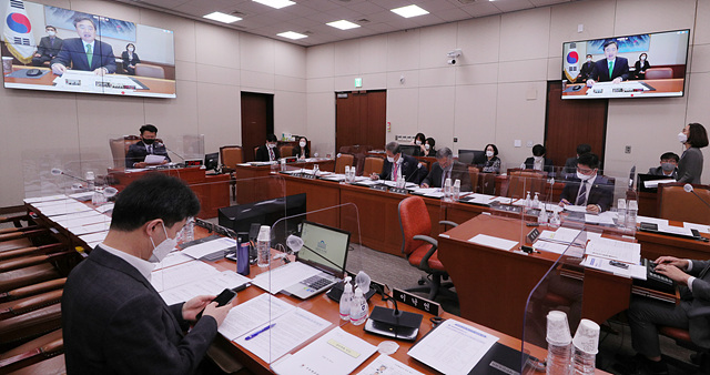 조현 유엔대사가 14일 오전 국회에서 열린 외교통일위원회의 재외공관 영상국감에 출석해 업무보고를 하고 있다. (사진=공동취재단)
