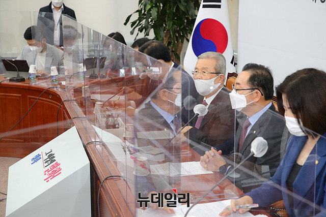 김종인 국민의힘 비상대책위원장이 15일 오전 국회에서 열린 비대위에서 모두발언을 하고 있다.김 위원장은 이수혁 주미대사 국정감사 발언 논란에 대해 "70년 동안 한미동맹을 바탕으로 오늘날 우리가 누리는 경제적 발전과 전쟁 억제를 이어 왔는데, 이에 대한 근본이 바뀔 수 있다는 주미대사의 발언은 국민에게 상당히 놀라움을 줄 수 있는 사안"이라며 "정부가, 특히 문재인 대통령이 분명한 답변을 국민에게 해줘야 옳다"고 말했다.이어 "문 대통령은 종전선언에 집요한 생각을 갖고 있는 것 같다. 종전선언이 과연 대한민국 안보에 어떤 영향을 미칠지 깊은 성찰을 하고 있나"고 반문했다. (사진=국민의힘)