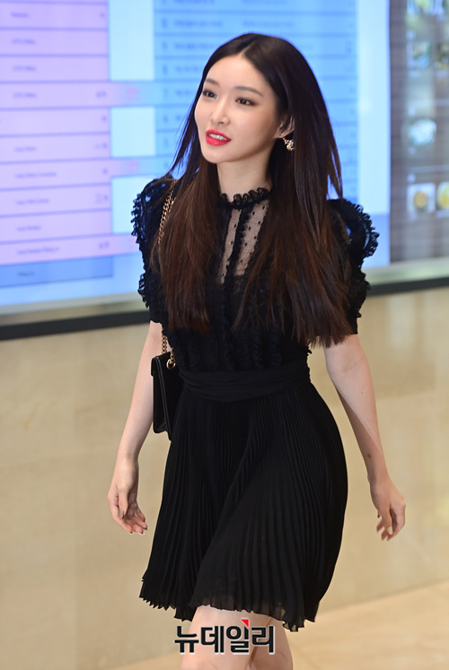 가수 청하가 15일 오후 서울 중구 롯데호텔에서 열린 이탈리아 코스메틱 브랜드 '돌체앤가바나 뷰티' 신제품 패션립 출시 기념행사에 입장하고 있다.