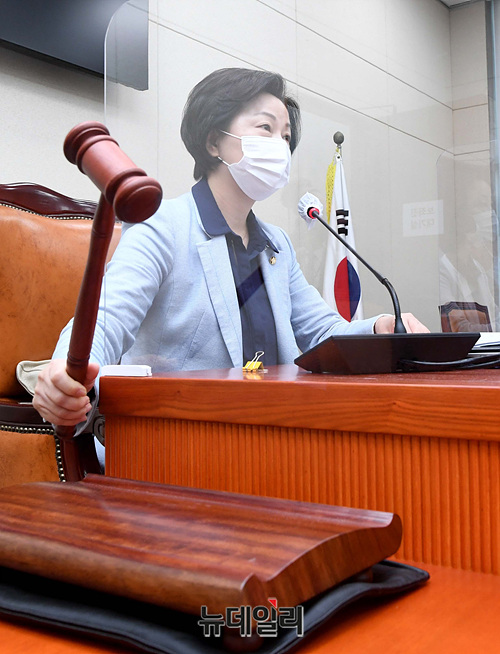 송옥주 국회 환경노동위원장이 15일 오전 국회에서 열린 환경노동위원회 국정감사에서 의사진행을 하고 있다. (사진=공동취재단)