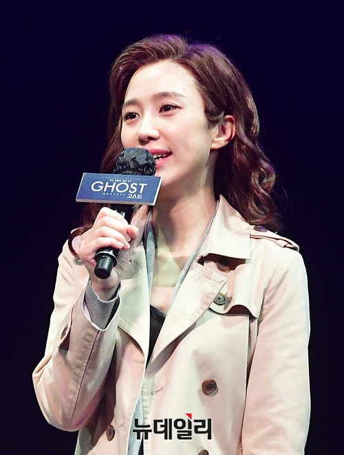 배우 박지연이 15일 오후 서울 구로구 디큐브아트센터에서 열린 뮤지컬 '고스트' 프레스콜에서 인사말을 하고 있다.