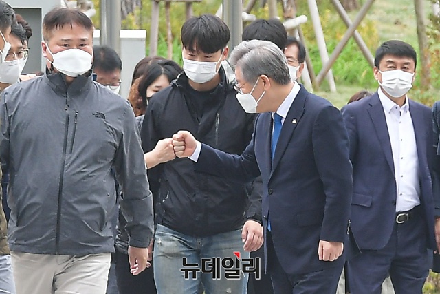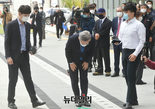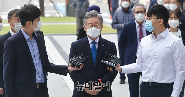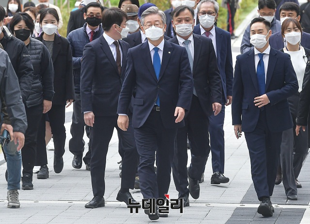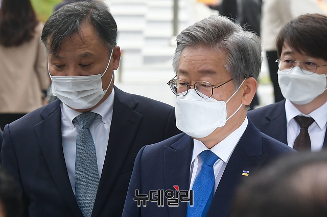 이재명 경기지사가 16일 오전 경기 수원시 수원고등법원에서 열린 파기환송심 선고공판에 출석하고 있다.이 지사는 공직선거법상 허위사실공표 혐의 등으로 기소돼 2심에서 당선무효형인 벌금 300만원을 선고받았다. 이후 대법원은 상고심에서 원심을 파기하고, 무죄 취지로 사건을 고등법원으로 돌려보냈다.수원고법은 파기환송심 선고공판에서 무죄를 선고했다. 검찰이 일주일 내에 재상고장을 제출하지 않으면, 이번 무죄 판결은 그대로 확정된다.이 지사는 "민주주의 최후의 보루, 인권옹호의 최후 보루로 불리는 사법부의 현명한 판단에 경의를 표한다"며 "앞으로는 이런 송사에 시간을 소모하지 않고 도정에, 도민을 위한 길에 모든 에너지와 시간을 쏟고 싶다"고 말했다. (경기 수원=권창회 기자)