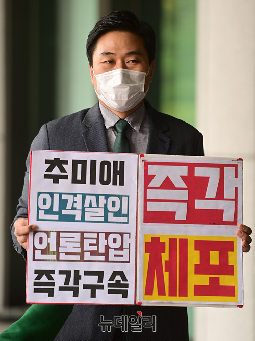 이번 사건은 법무부장관이라는 거악이 한 개인의 인격을 말살하고 언론의 자유를 위협하는 대단히 엄중한 사건이므로 수사당국은 추장관의 극악무도한 인격살인 언론탄압 사건을 철저히 수사하여 추장관을 엄벌에 처할 것을 강력히 촉구하는 바이다.