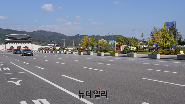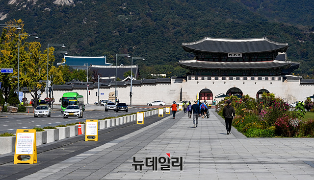 사회적 거리두기가 1단계로 하향돼 3주 만에 경찰 차벽이 사라진 18일 오후 서울 종로구 광화문광장이 100명 이상 대규모 집회·경찰 차벽·펜스가 없는 한산한 모습을 보이고 있다.종로경찰서는 지난 15일 8·15시민비상대책위원회(8·15비대위)가 18일과 25일 예정했던 1,000명 규모의 야외예배와 관련, 집회금지를 통고했다.경찰은 지난 개천절(3일)과 한글날(9일)에는 일부 우파단체의 집회를 저지하기 위해 광화문광장 일대에 경찰 차벽과 펜스를 겹겹이 설치한 바 있다.