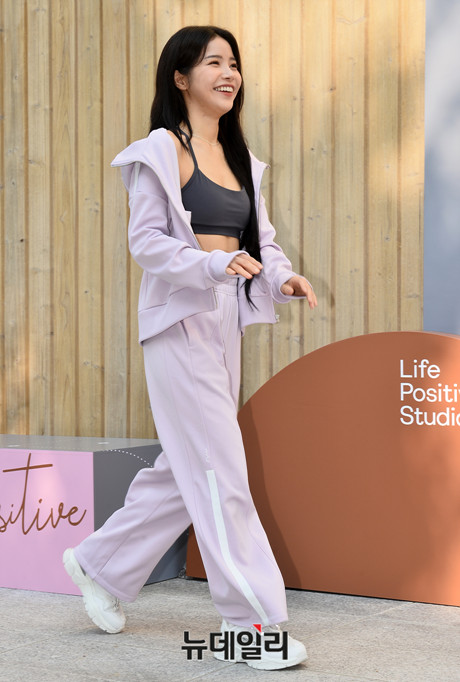 걸그룹 마마무 휘인이 19일 오전 서울 종로구 안다르 라이프 파지티브 스튜디오에서 열린 프리오픈 포토월 행사에 입장하고 있다.