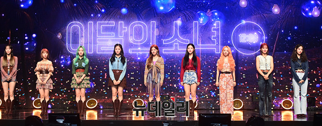 걸그룹 이달의소녀(LOONA)가 19일 오후 서울 용산구 블루스퀘어에서 열린 3번째 미니앨범 '미드나잇(12:00)' 쇼케이스에서 포토타임을 갖고 있다.