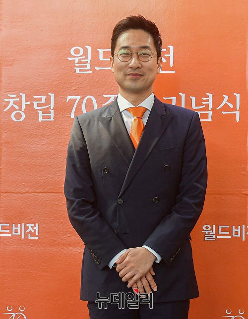 정석문 아나운서가 19일 오후 서울 용산구 백범김구기념관에서 열린 월드비전 창립 70주년 기념식에서 포토타임을 갖고 있다.