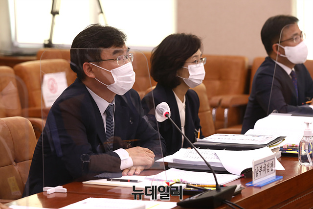 국회 법제사법위원회 국정감사가 열린 19일 오전 조상철 서울고등검찰청장, 오인서 수원고등검찰청장, 이성윤 서울중앙지방검찰청장 등이 증인으로 출석해 자리하고 있다. (사진=공동취재단)