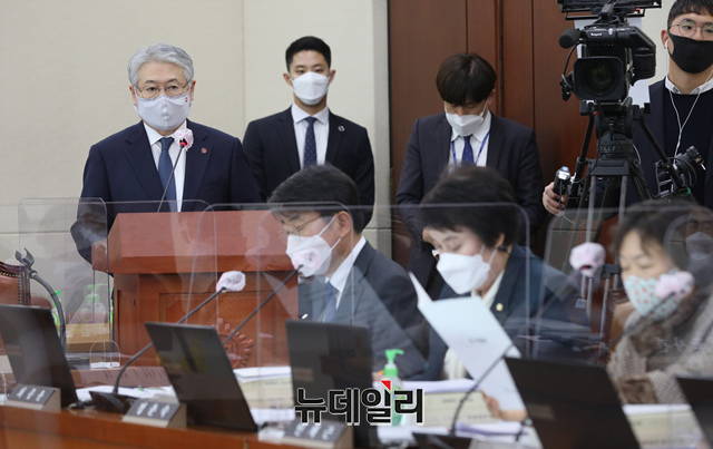 김용익 국민건강보험공단 이사장이 20일 오전 국회에서 열린 보건복지위원회의 국민건강보험공단, 건강보험심사평에 대한 국정감사에서 의원들의 질문에 답하고 있다. (사진=공동취재단)