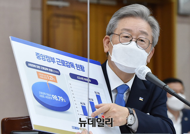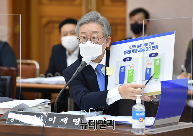 이재명 경기도지사가 19일 오전 경기 수원시 경기도청에서 열린 국회 행정안전위원회의 경기도에 대한 국정감사에서 의원들의 질문에 답하고 있다. (사진=공동취재단)