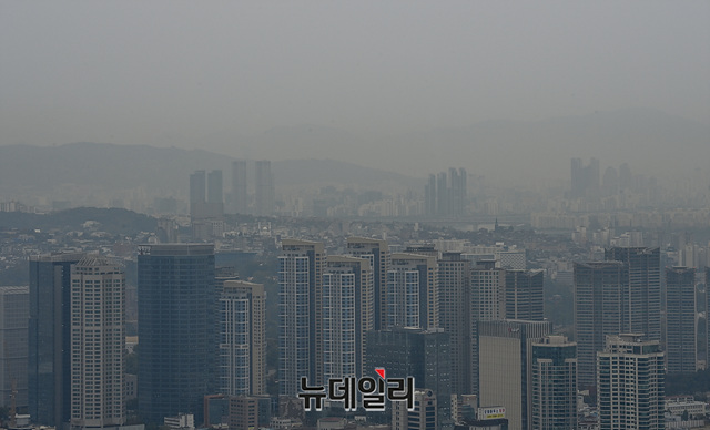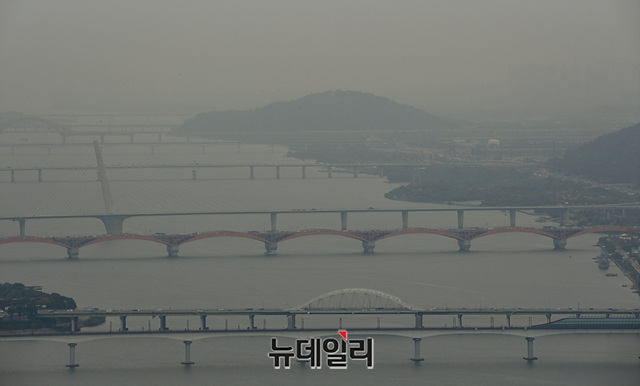 중국에서 20일 황사가 발원함에 따라 우리나라에 영향을 미친 21일 오전 63스퀘어에서 내려다 본 서울 도심이 뿌옇게 보이고 있다. 기상청은 중국에서 발원한 황사가 이날 밤부터 우리나라에 영향을 미칠 것으로 내다봤다.
