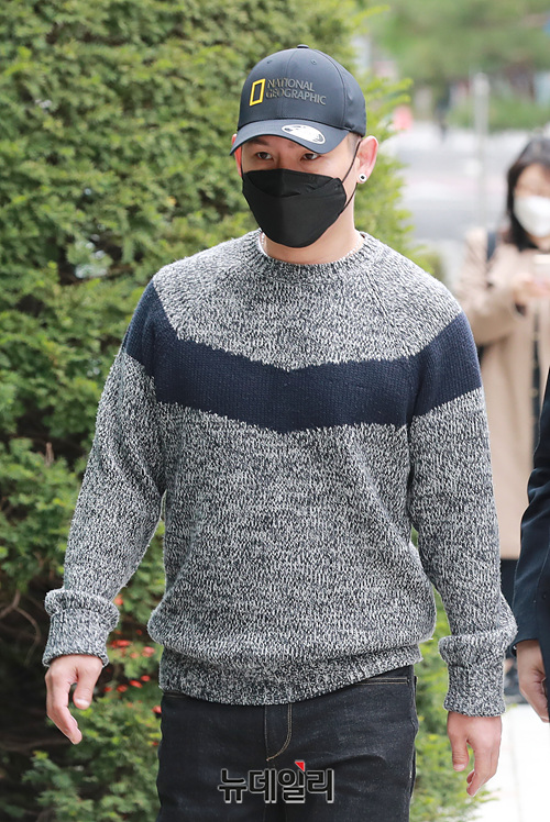 불법도박장 개설 혐의를 받는 개그맨 김형인이 21일 오전 서울 양천구 서울남부지법에서 열린 '불법 도박장 개설 혐의 공판'에 출석하고 있다.