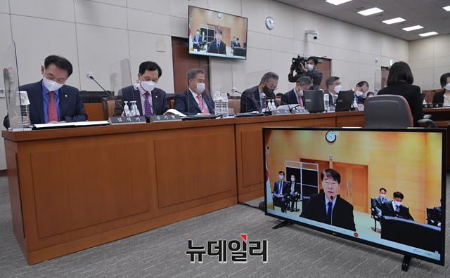 장하성 주중대사가 20일 오전 국회에서 열린 외교통위원회의 주일대사관, 주중대사관에 대한 화상 국정감사에서 의원들의 질문에 답하고 있다. (사진=공동취재단)