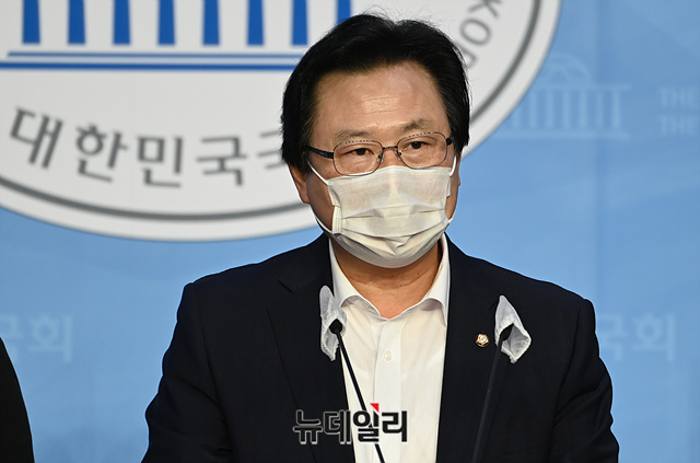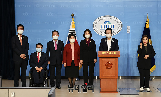 강기윤 국민의힘 의원 등 국민의힘 국회 보건복지위원회 위원들이 22일 오전 국회 소통관 기자회견장에서 복지위 국정감사 관련 기자회견을 갖고 있다.