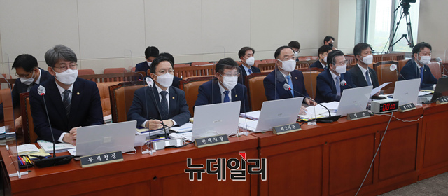 홍남기 경제부총리 겸 기획재정부 장관이 22일 오전 국회에서 열린 기획재정부·통계청·국세청 등에 대한 종합감사에 출석해 의원들의 질의에 답변하고 있다. (사진=공동취재단)