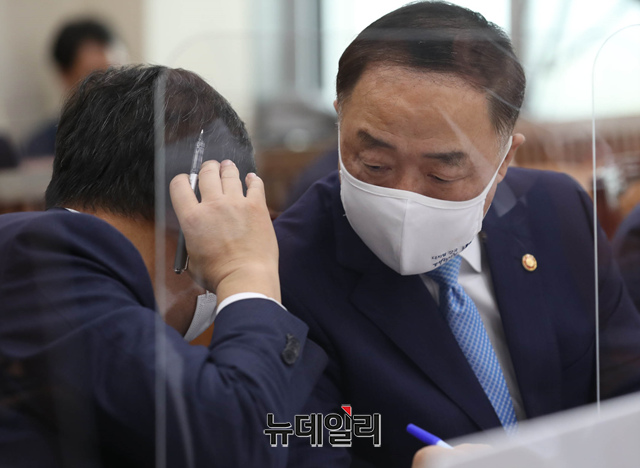 홍남기 경제부총리 겸 기획재정부 장관이 22일 오전 국회에서 열린 기획재정부·통계청·국세청 등에 대한 종합감사에 출석해 자료를 보고 있다. (사진=공동취재단)