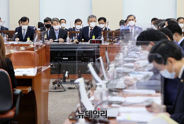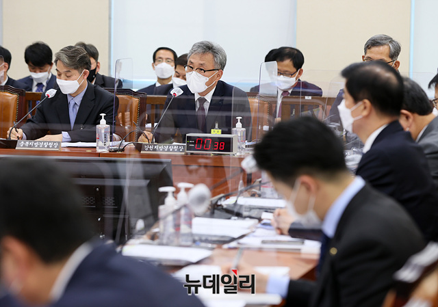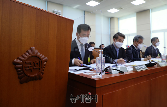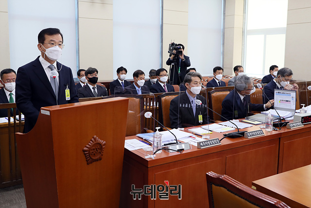 김규현 강원지방경찰청장 등 증인들이 23일 오전 국회에서 열린 행정안전위원회의 강원지방경찰청 등에 대한 국정감사에 출석해 발언을 하고 있다. (사진=공동취재단)