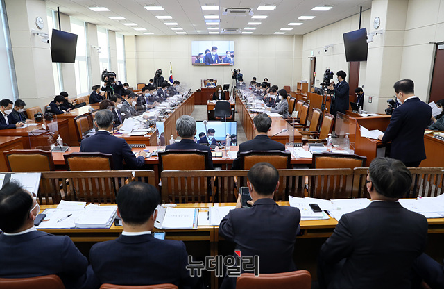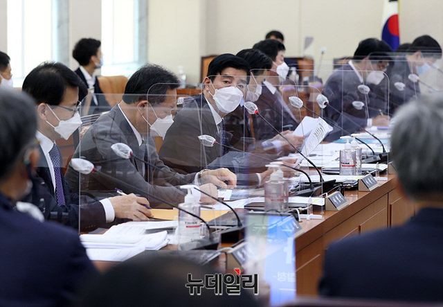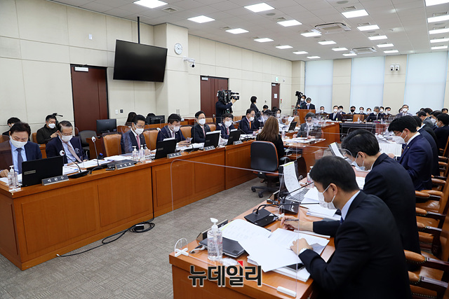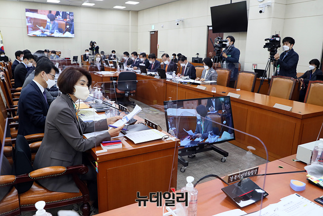 국회 행정안전위원회 위원들이 23일 오전 국회에서 열린 행안위 강원지방경찰청 등에 대한 국정감사에서 김규현 강원지방경찰청장 등 증인들에게 질의를 하고 있다. (사진=공동취재단)