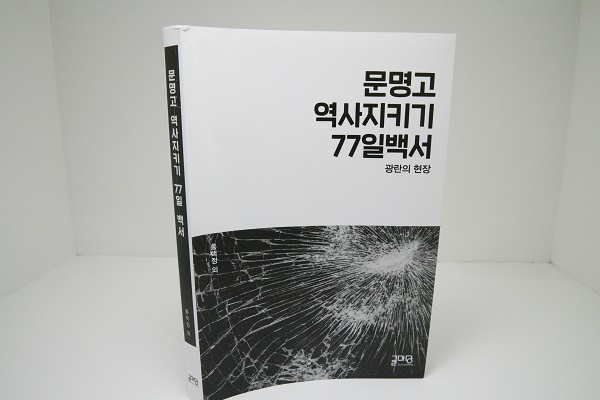 '문명고 역사지키기 77일백서'는 2017년 2월 문명고가 국정교과서 연구학교로 선정됐다가 무산되는 과정에서 겪은 불법적인 폭력 시위 과정을 사실대로 기록한 책이다. 당시 사건을 보도한 기사들을 충실히 인용해 해당 연구학교 교장의 '교과서 선택권'조차 처참하게 무시된 파행의 과정이 낱낱이 소개됐다.