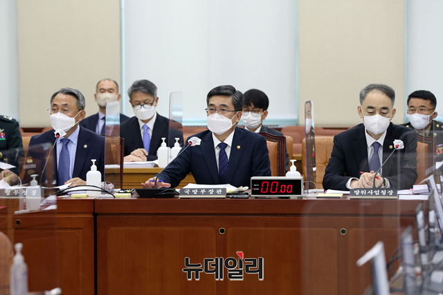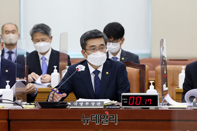 서욱 국방부 장관이 26일 오전 국회에서 열린 국방위원회의에 국방부 등에 대한 종합국정감사에 출석해 의원들 질문에 답하고 있다. (사진=공동취재단)