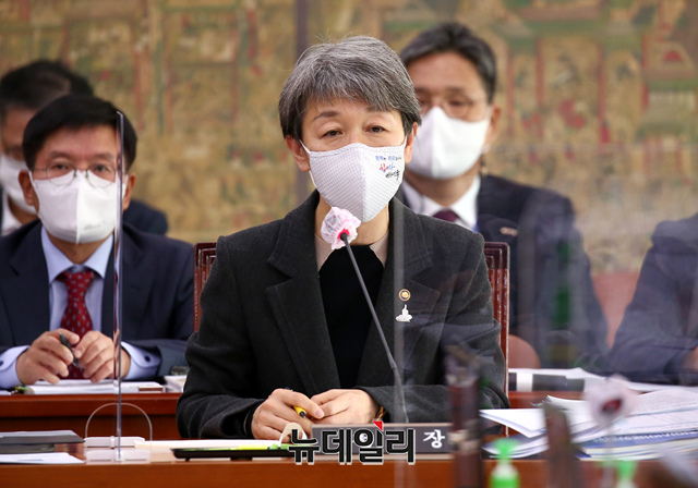 정재숙 문화재청장이 26일 오전 국회에서 열린 종합국정감사에 출석해 업무보고를 하고 있다. (사진=공동취재단)