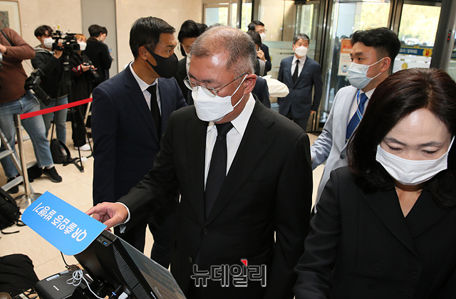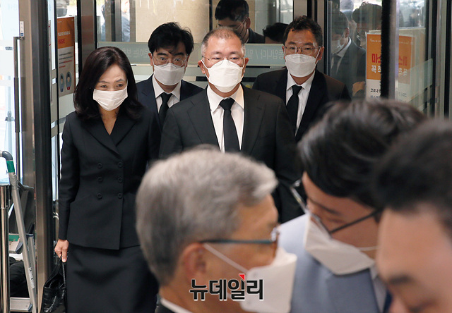정의선 현대자동차그룹 회장이 26일 오전 서울 강남구 삼성서울병원 장례식장에 마련된 故 이건희 삼성그룹 회장의 빈소 조문을 하고 있다.