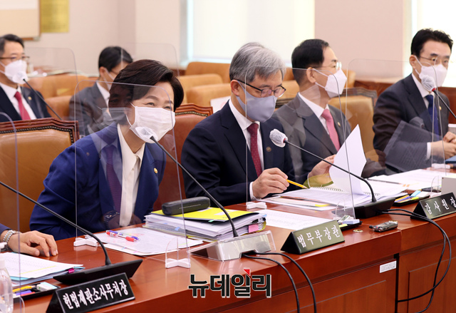 추미애 법무부 장관이 26일 오전 국회에서 열린 법제사법위원회 종합국정감사에 출석해 의원들의 질문에 답하고 있다. (사진=공동취재단)