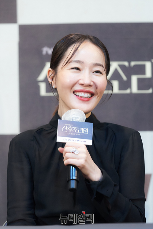 배우 엄지원이 26일 오후 온라인으로 열린 tvN 새 월화드라마 '산후조리원(연출 박수원)' 제작보고회에서 인사말을 하고 있다.