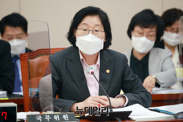 이정옥 여성가족부 장관이 27일 오전 국회에서 열린 여성가족위원회의 여성가족부, 한국양성평등교육진흥원, 한국청소년활동진흥원, 한국청소년상담복지개발원, 한국건강가정진흥원, 한국여성인권진흥원 국정감사에서 의원들의 질문에 답하고 있다. (사진=공동취재단)