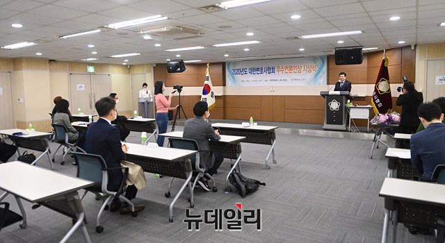 이찬희 대한변호사협회장이 28일 오전 서울 강남구 대한변협회관 대강당에서 열린 2020년도 대한변호사협회 우수언론인상 시상식에서 인사말을 하고 있다.