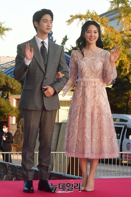배우 장동윤, 장예원 아나운서가 28일 오후 서울 동대문구 경희대학교 평화의전당에서 열린 '2020 대한민국 대중문화예술상' 시상식 레드카펫에 입장하고 있다.올해로 11회를 맞는 '대한민국 대중문화예술상'은 대중문화예술의 사회적 위상을 높이고, 대중문화예술인들의 창작의욕을 높이기 위해 마련된 시상식이다.'코로나19(중국 우한 폐렴)'로 무관중 온라인 행사로 진행된다. 28일 오후 6시부터 한국콘텐츠진흥원 유튜브와 네이버 V앱을 통해 생중계 된다.