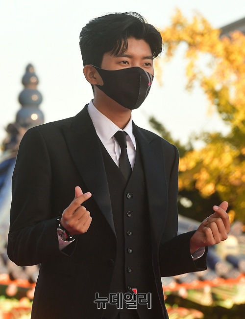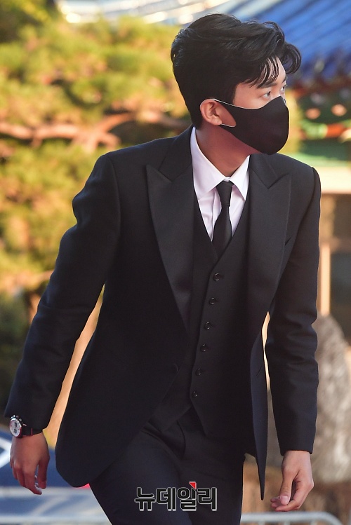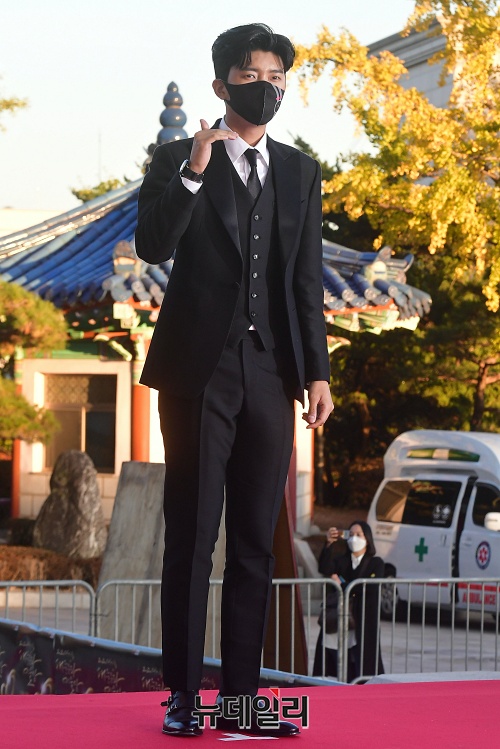 가수 임영웅이 28일 오후 서울 동대문구 경희대학교 평화의전당에서 열린 '2020 대한민국 대중문화예술상' 시상식 레드카펫에 입장하고 있다.