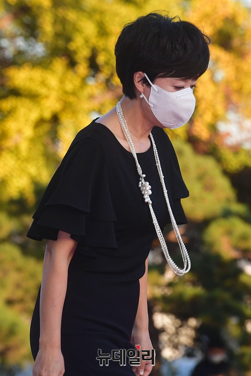 방송인 박미선이 28일 오후 서울 동대문구 경희대학교 평화의전당에서 열린 '2020 대한민국 대중문화예술상' 시상식 레드카펫에 입장하고 있다.