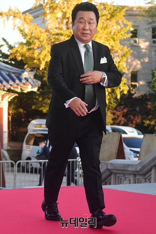 배우 임하룡이 28일 오후 서울 동대문구 경희대학교 평화의전당에서 열린 '2020 대한민국 대중문화예술상' 시상식 레드카펫에 입장하고 있다.
