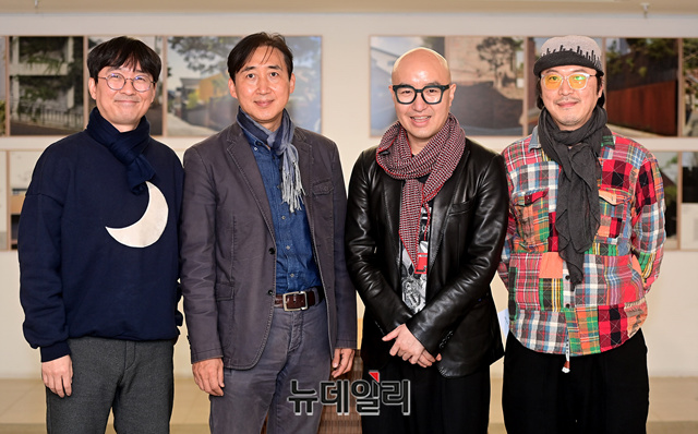 김승회 2021 서울도시건축비엔날레 운영위원장이 30일 오후 서울 중구 서울도시건축전시관 비움홀에서 열린 '2020 서울도시건축 프리비엔날레'에서 기념촬영을 하고 있다.