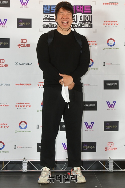 개그맨 오지헌이 30일 오후 서울 여의도 아시안 디스트릭트에서 열린 온라인 자선파티 '셀렉터데이'에서 포토타임을 갖고 있다.