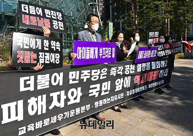 더불어 민주당은 서울시장과 부산시장에 후보를 공천하겠다는 결정을 당장 철회하고 더불어 민주당의 대표했던 두 시장의 파렴치한 잘못에 대해 피해자에게 진심으로 사과하십시오. 그것만이 집권여당으로서 할 도리이며, 그것이 진정한 책임정치입니다. 또한 그것이 국민의 혈세 838억을 낭비한 공당으로서 보여줘야 할 최소한의 염치입니다.