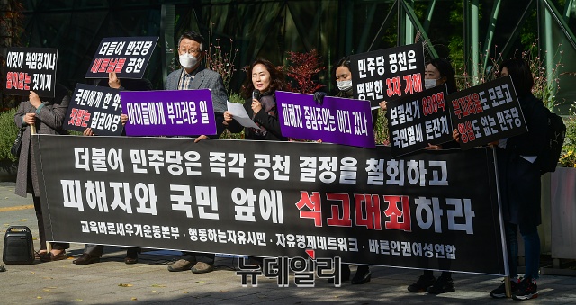 [영상] 민주당 공천 결정 규탄하는 박소영 교육바로세우기 대표