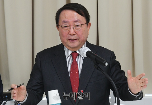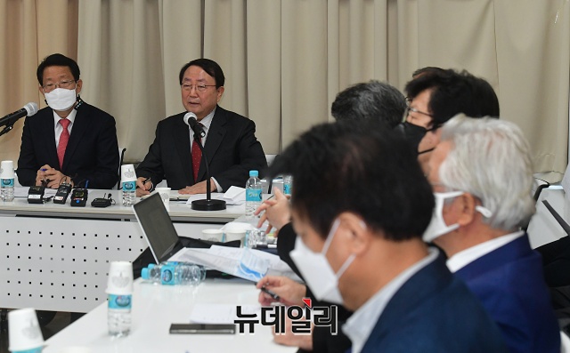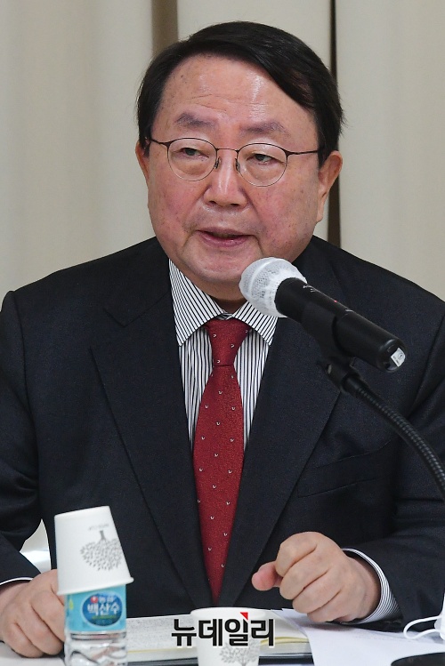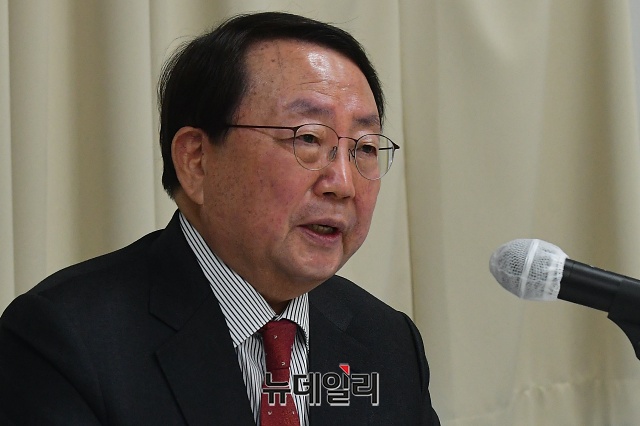 이갑산 범시민사회단체연합 상임대표가 4일 오전 서울 마포구 현대빌딩에서 열린 '좋은 후보 선정 특별초청토론회'에서 인사말을 하고 있다.