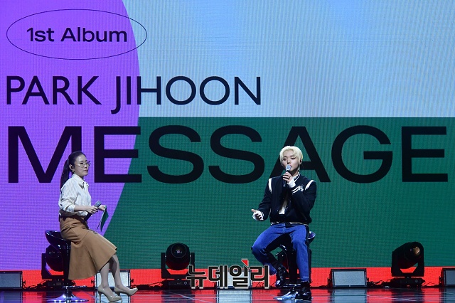 가수 박지훈이 4일 오후 서울 용산구 블루스퀘어 아이마켓홀에서 열린 첫번째 정규앨범 'MESSAGE(메세지)' 쇼케이스에서 인사말을 하고 있다.