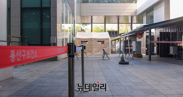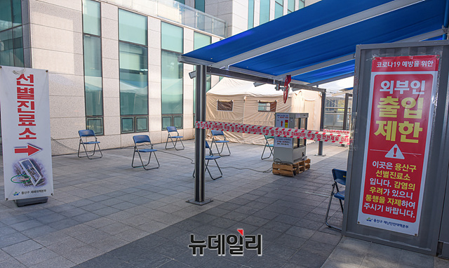 국내 '코로나19(중국 우한 폐렴)' 신규 확진자가 이틀 째 세 자리수를 기록한 5일 오전 서울 용산구 용산구보건소에 설치된 선별진료소가 한산한 모습을 보이고 있다.