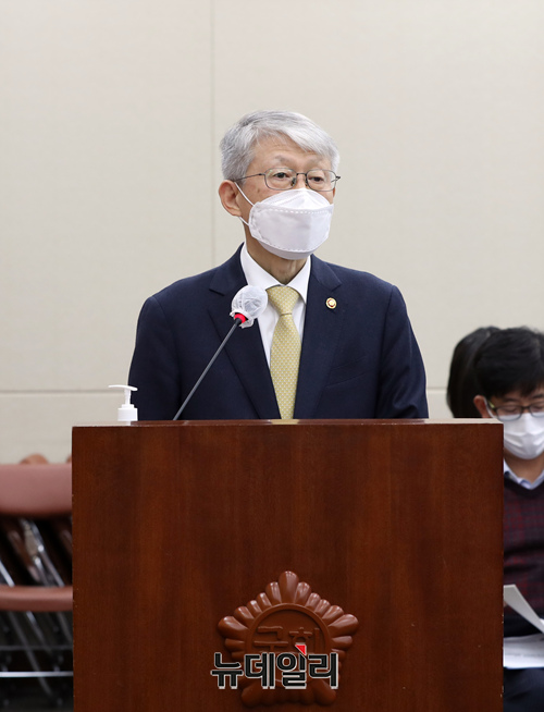 최기영 과학기술정보통신부 장관이 5일 오전 국회에서 열린 국회 과학기술정보방송통신위원회 전체회의에서 업무보고를 하고 있다. (사진=국회사무처)