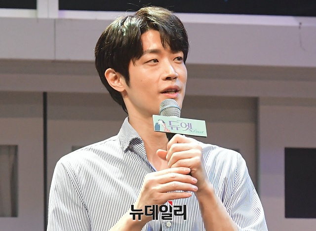 배우 박영수가 5일 오후 서울 강남구 KT&G 상상마당 대치아트홀에서 열린 뮤지컬 '듀엣' 프레스콜에서 인사말을 하고 있다.