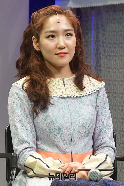 배우 문진아가 5일 오후 서울 강남구 KT&G 상상마당 대치아트홀에서 열린 뮤지컬 '듀엣' 프레스콜에서 인사말을 하고 있다.