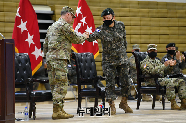 [포토] 악수하는 로버트 에이브럼스 사령관과 김승겸 부사령관