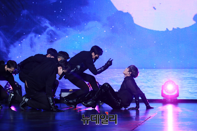 프로젝트 그룹 워너원 출신 가수 하성운이 9일 오후 온라인으로 진행된 네 번째 미니앨범 '미라지' 쇼케이스에서 무대를 선보이고 있다.