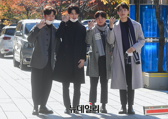 '팬텀싱어3'에서 준우승한 크로스오버 보컬 그룹 '라비던스'가 10일 오후 서울 양천구 목동 SBS에서 진행되는 라디오 '최화정의 파워타임' 녹화 전 포토타임을 갖고 있다.